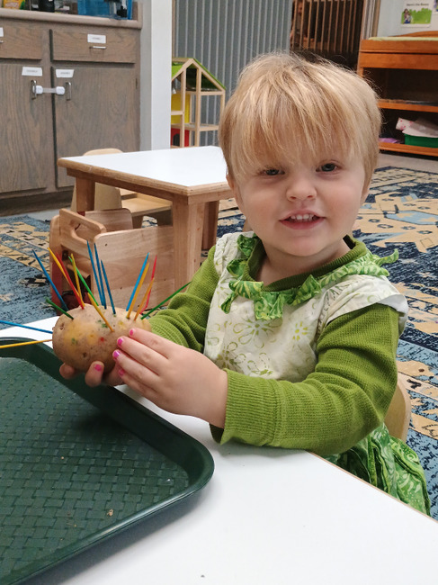 Children choose activities from the classroom materials and work at their own pace. Children learn to take care of their own things and clean up after themselves.
