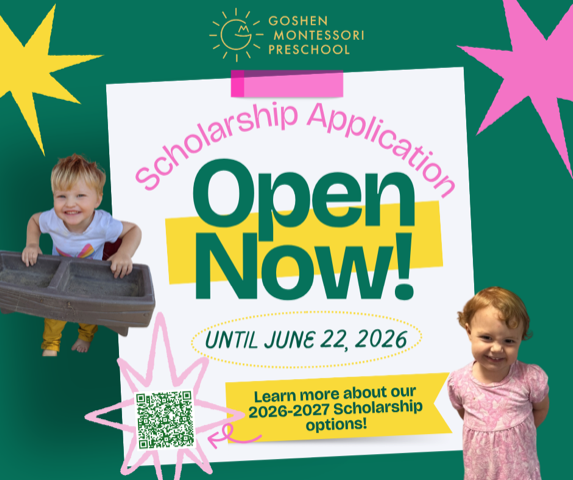Enrollment Applications for the 2026-2027 School Year are open! If you are interested, please request to schedule a tour by emailing info@goshenmontessori.org